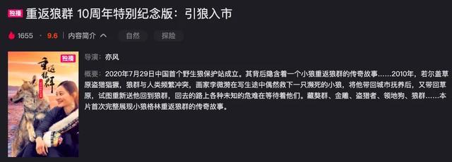 2017年6月,由2700小时的素材制成的纪实电影《重返狼群》上映引起不小的轰动,失焦、晃动的镜头、粗糙的画质并没有折损它的口碑,豆瓣评分给出8.4的好成绩。