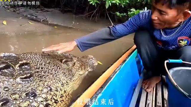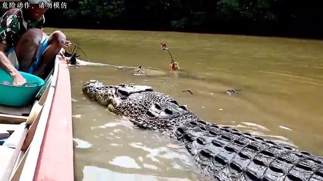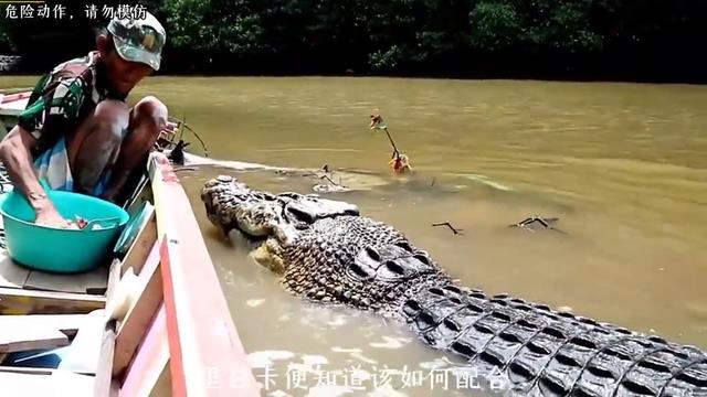 一条巨型鳄鱼悄然游向渔民的小船,紧张的气氛瞬间笼罩了整艘船。船上的人全都屏住呼吸,不敢发出半点声响,生怕惊扰到这头生性凶猛的水中霸主。可身边一位大叔却异常镇定,他不慌不忙的取出备好的鸡腿,一块一块轻轻递到鳄鱼嘴边,动作舒缓娴熟,仿佛在照料朝夕相处的老友。