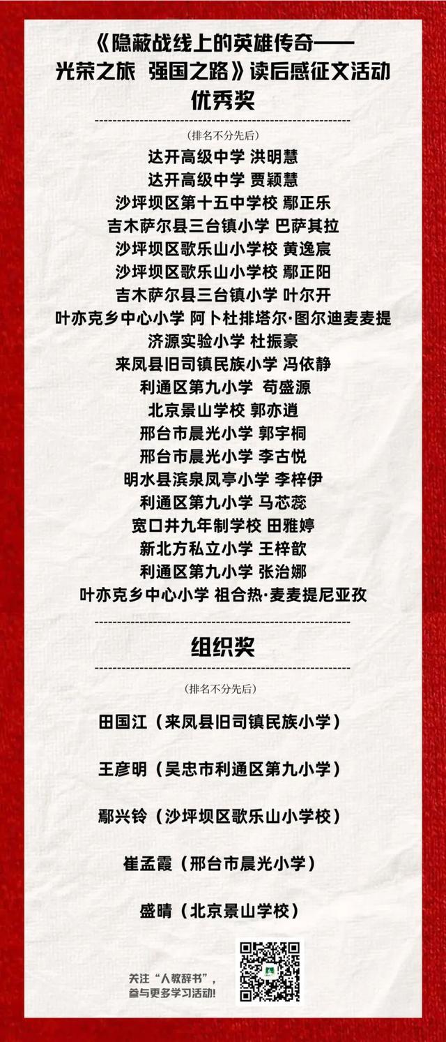 今日,获奖名单正式揭晓——每一份作品都让英雄的足迹在当下重新清晰,让“隐秘而伟大”的精神在青春的笔尖绽放。现在,让我们共同见证!
