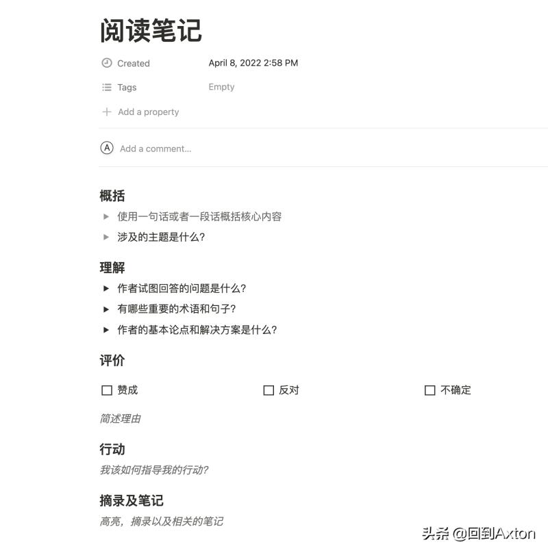 在讲阅读笔记时,我会用Notion来做演示。但其实我并不用Notion做阅读笔记,原因咱们后面讲APP的时候再细说。