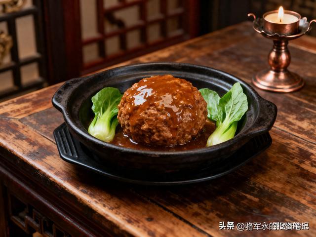 先来个狮子头,看能不能让你口舌生津:猪肉肥瘦各半,爱吃肥的亦可肥七瘦三,要“细切粗斩”,如石榴米大小(绞肉机绞的肉末不行),荸荠切碎,与肉末同拌,用手抟成招柑大的球,入油锅略炸,至外结薄壳,捞出,放进水锅中,加酱油、糖,慢火煮,煮至透味,收汤放入深腹大盘。