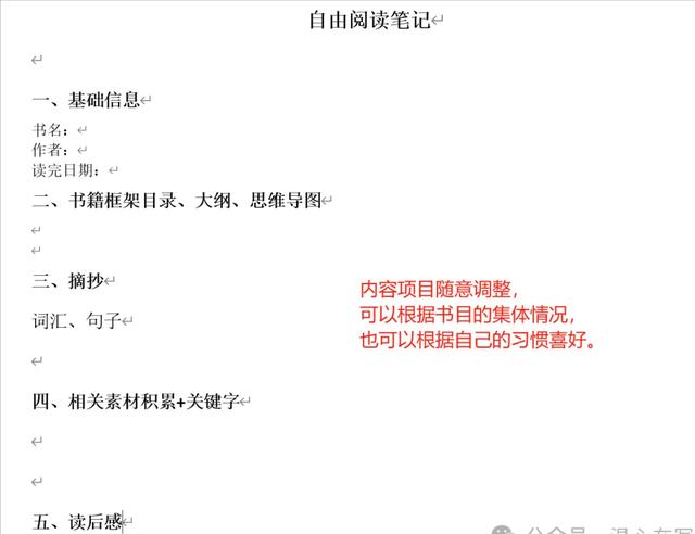 如果觉得这些表格式的阅读笔记不习惯,那就试试这个自由阅读笔记吧!