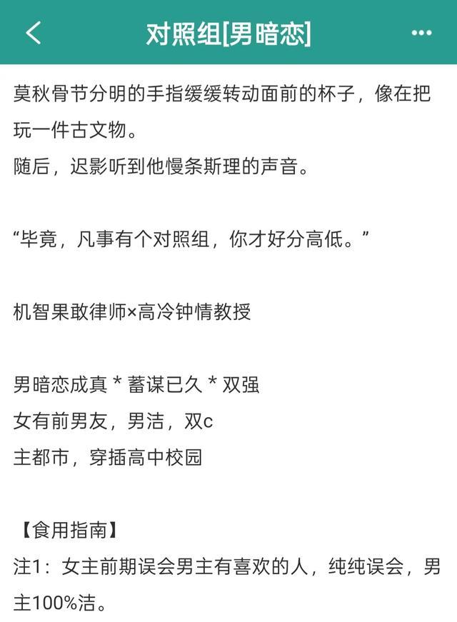 最近完结的语痂的《对照组》,果敢律师vs 高冷恋爱脑教授。