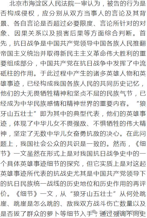 因此,我们律师出庭,首先是这个官司一定要在法律上打赢。但是为什么我们还要推动《英雄烈士保护法》呢?就在于我们实际上是要站在当时意识形态斗争的角度,政治角度,完成法律上的任务......意识形态斗争法律化,就是要以政治大局引导法律斗争,以法律斗争服务政治大局。核心战场,首先是在法律斗争上,聚焦于法律斗争。法律斗争胜利了,我们中华民族的意识形态,社会主义核心价值观,就会旌旗猎猎,得到张扬;法律斗争失败了,我们中华民族的意识形态,社会主义核心价值观,就要在一定程度上,甚至相当时期,被历史虚无主义打败,甚至社会主义正气就不能张扬。】