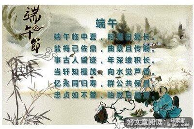 天灰蒙蒙的,空气是潮湿的,他独自来到江边,面对汨罗江,纵身一跃,从此,历史上少了一个叫屈原的伟大诗人,多了一个端午节。屈原立志要为人民造福,虽“吾将上下而求索”,无奈佞臣当道,壮志未酬,只能离开朝廷,他感到愤恨、无助,只能将自己交给这滚滚江水。但他着作的《离骚》被诵读千百年,他的爱国精神和清正、勇敢的品质将永垂不朽。端午是苦的。