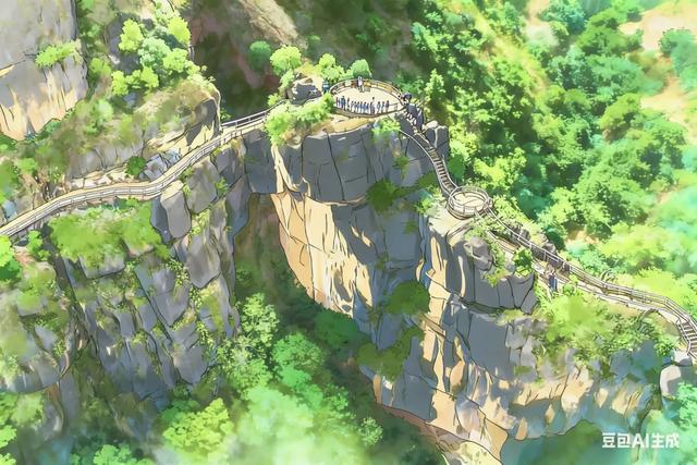 妈妈拉着我的手站在桥中央俯瞰桥下的深谷。看,谷底云雾缭绕,仿佛仙境一般,隐约能看见溪水在云雾中流淌,发出叮咚脆响,一朵朵红花,在云雾中若隐若现。抬头望去,澄净的天像一望无际的碧海。太阳早已透过云霞,露出了一张胀得通红的脸庞。远处,青山如黛,些许云雾还在山腰嬉闹,近处,绿树成荫,树叶在微风中沙沙作响,山脚的农庄炊烟袅袅……