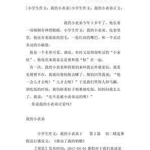 提升写作能力,做到手到擒来,希望这篇文章对您的作文能力提升有帮助,特地精心整理我的表弟作文(精选10篇)。我的表弟作文(精选10篇) 篇1湖北省荆州市沙洋七里湖小学二年级一班李丹妮 我有一个小表弟,他刚满四岁。 ...