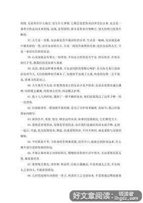11、友情是相知。当你需要的时候,我还没有讲,友人已默默来到你的身边。他的眼睛和心能读懂你,更会用手挽起你单薄的臂弯。因为有友情,在这个世界上你不会感到孤单。 ----汪国真