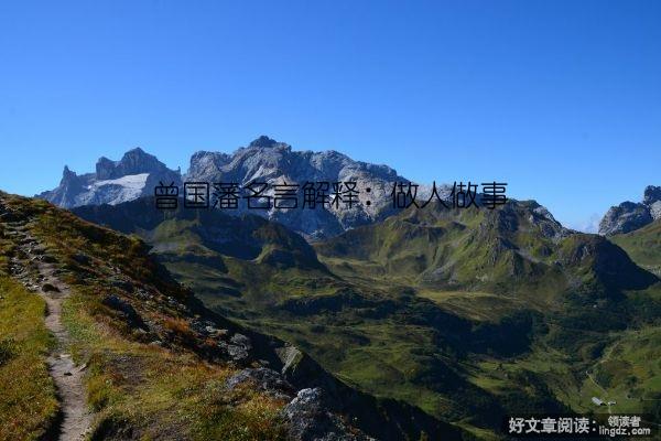 最后,我想说的是:“做人做事”并不仅仅是曾国藩的理念,它更是一种人生观和价值观,是我们在生活中做人、做事应该遵循的原则和信念。希望广大同学们在以后的生活中,都能够牢记曾国藩的名言,不断提升自身素质,做一个合格的人,为社会和人类做出杰出的贡献。