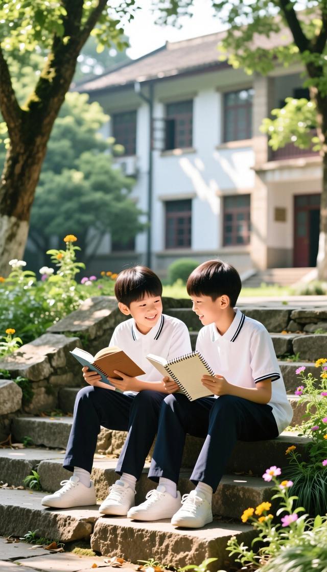 在学校里,朱金祥的照顾无微不至。上课铃响前,他会把钟华强稳稳背到座位上,帮他整理好课本文具;课间休息,他背着他去走廊透气,去厕所方便;午饭时间,他先打好自己的饭,再帮钟华强端饭、喂饭,等钟华强吃完,自己才匆匆扒几口;体育课上,同学们在操场奔跑嬉戏,朱金祥就背着钟华强坐在操场边,陪着他看同学玩耍,给他讲操场上的趣事,不让他落单;放学路上,夕阳把两个少年的影子拉得很长,朱金祥背着钟华强,慢慢走在回家的路上,两人聊着学习、聊着梦想,欢声笑语洒满小路。