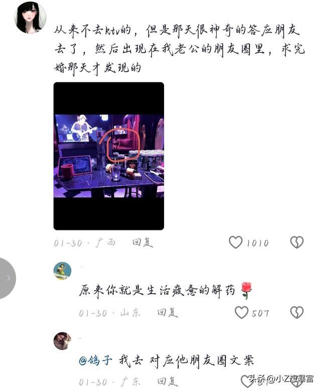 从来不去KTV的,但是那天很神奇的答应朋友去了,然后出现在老公的朋友圈里,求完婚那天才发现的。