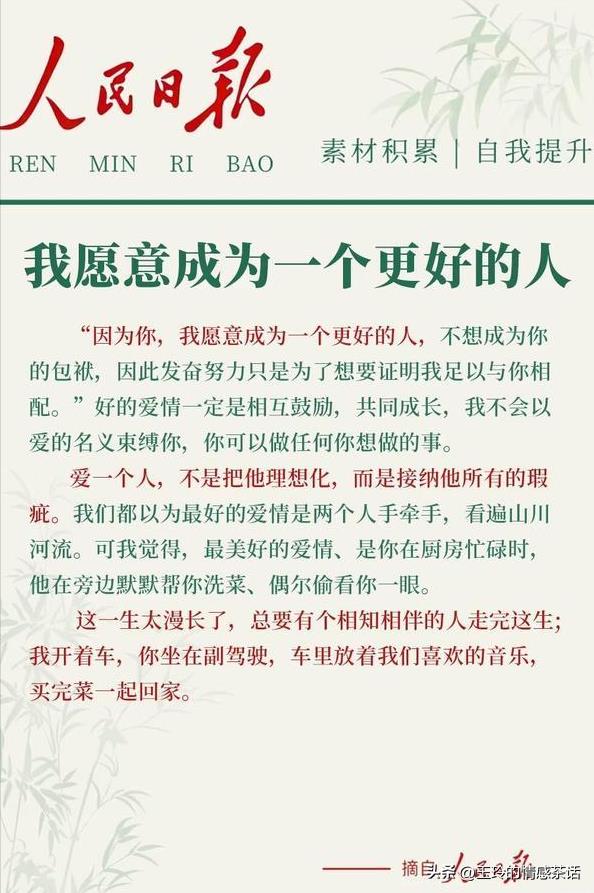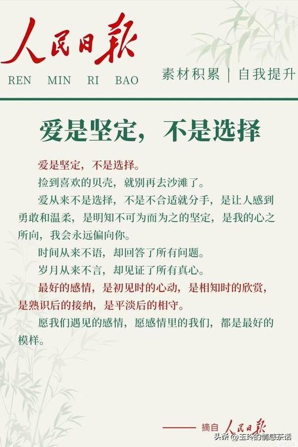 其实,《人民日报》曾点赞过一段话:“好的感情,不是瞬间的怦然心动,而是细水长流的久处不厌。”