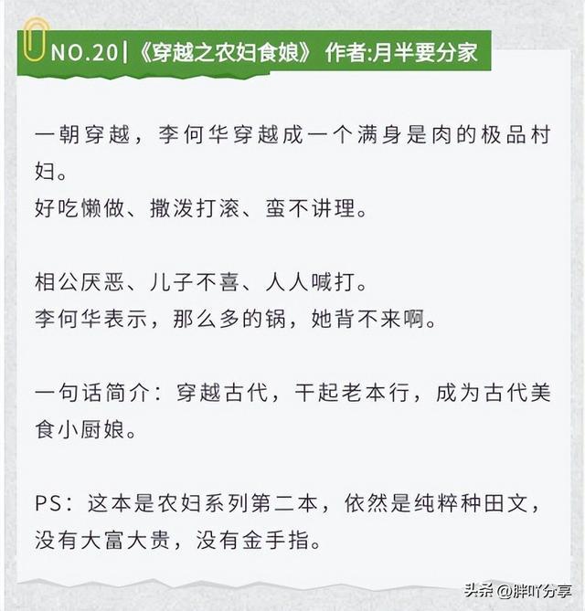 20. 《穿越之农妇食娘》 作者:月半要分家