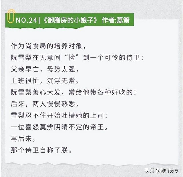 古言美食甜宠文。身世曲折的小厨娘进入镖局,用美食俘获了挑剔又神秘的男主的心。作者文笔古色古香,感情线甜中带撩,剧情有反转。男女主互动有趣,是质量上乘的冷门好文。