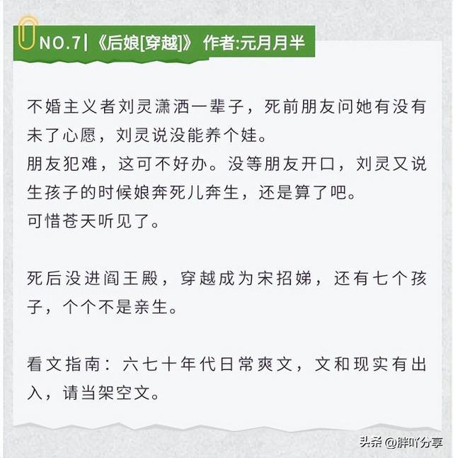 年代美食养娃爽文。不婚主义者穿越成七十年代七个娃的后娘,用美食与智慧打理生活、教育孩子。行文风格类似《父母爱情》,专注于平淡温馨又笑料百出的家庭日常,将吃吃喝喝的琐事写得妙趣横生,治愈感十足。