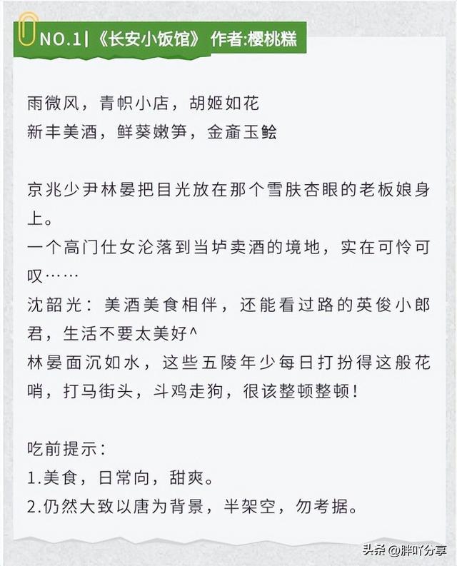 穿越美食文的清新典范。罪臣之女沈韶光凭借现代智慧,在长安从路边摊做到连锁酒楼,将盛唐烟火气与诱人美食完美融合。机灵果敢的女主与闷骚高冷的京兆少尹男主,互动甜爽有趣。全文宛如一卷活色生香的盛唐美食风物画,温馨治愈,好评如潮。