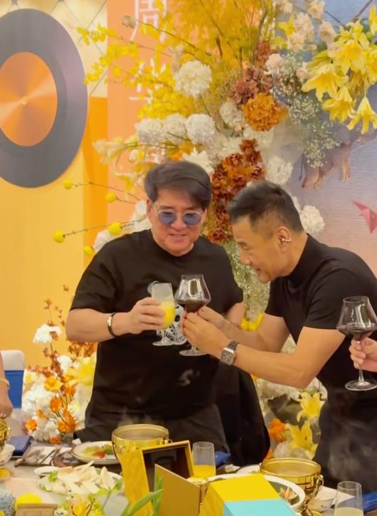 周华健把于荣光安排在主位挨着自己坐,于荣光性格豪爽上来就倒半杯红酒然后站起来说了一番话,说的什么外人不知道但肯定是当年那些事,周华健因为要养嗓子喝的果汁见于荣光站起来他和工作人员都跟着起身,大家一起碰杯,这一夜俩人推杯换盏促膝长谈往事如潮水般涌上来,
