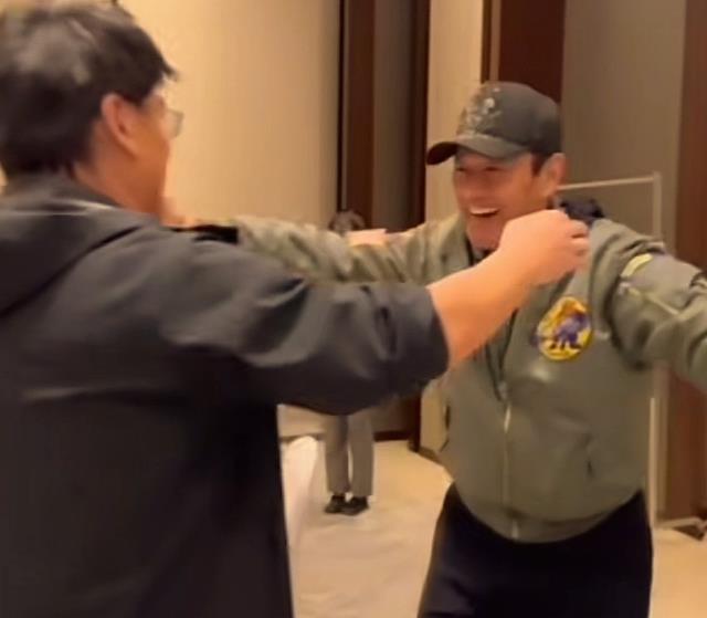 于荣光是专程从北京赶过来的,就为了给老朋友助个场,他一进餐厅周华健就看见了马上起身走过去,俩人张着双臂就抱在一起像一对好兄弟,于荣光穿红外套笑得特别喜庆,周华健也是满脸笑容,这场面要是被拍成短视频配上《朋友》的BGM,估计能把人看哭,