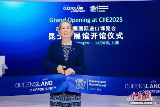11月6日,澳大利亚昆士兰州财政、贸易、就业与培训部长罗斯·贝茨为第八届中国国际进口博览上的昆士兰州展馆揭幕。 (昆士兰州政府贸易投资机构供图)