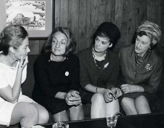 1968 年,美国女性运动领袖贝蒂 · 弗里丹(左二)与女性主义活动家们在交谈(视觉中国 供图)