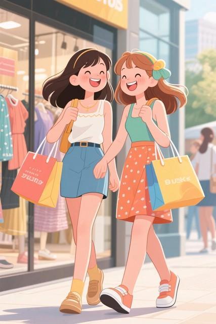 两个扎羊角辫的小姑娘,搂着肩膀,笑得没心没肺。