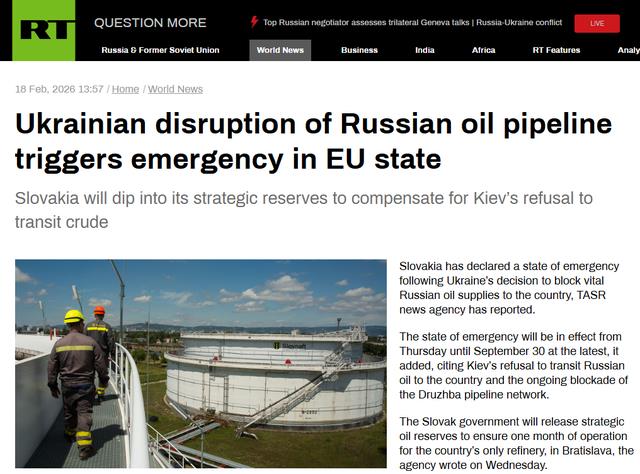 今日俄罗斯电视台2月18日的报道说,斯洛伐克总理菲佐表示,乌克兰总统泽连斯基拒绝在恢复石油供应的问题上合作。基辅方面推迟重启石油供应,是为了向匈牙利施压,迫使其放弃对乌克兰加入欧盟的否决权。