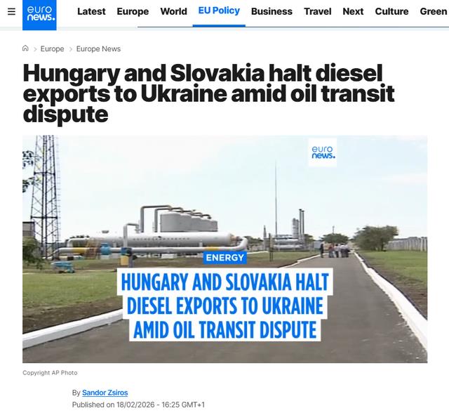 当地时间2月18日,匈牙利、斯洛伐克宣布暂停向乌克兰出口柴油,直至乌克兰恢复石油输送。近日,多家媒体分析了其中的复杂博弈。