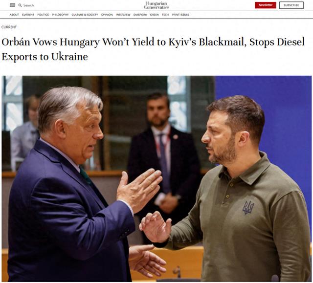 《匈牙利保守派》季刊网站当地时间2月18日发表题为《欧尔班誓言匈牙利不会屈服于基辅的勒索 停止向乌克兰出口柴油》的报道。