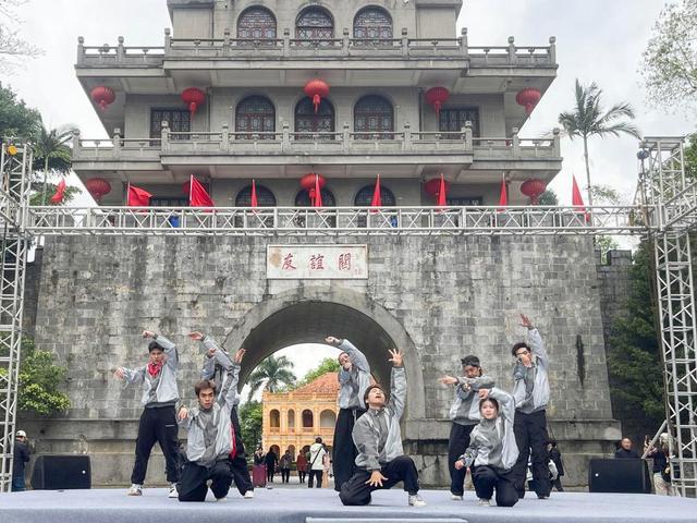 2025年3月30日,在广西凭祥友谊关,越南舞者在表演街舞。