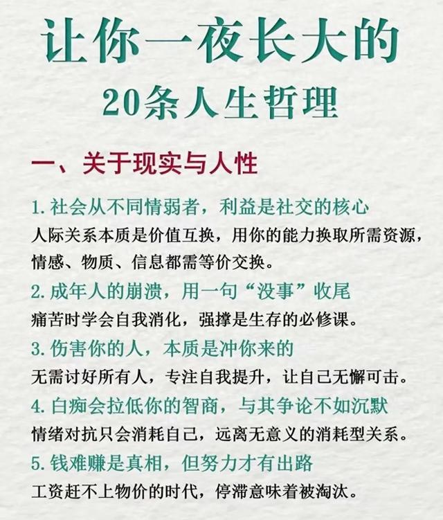 真正让你一夜长大的,从不是某句大道理,而是某个瞬间的“突然看清”。可能是父母弯腰时露出的白发,是你求助时别人的敷衍,是努力很久却一无所获的深夜。那一刻你会懂:没...