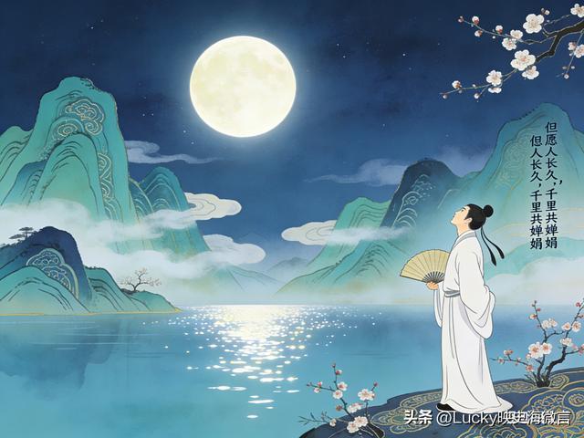 解读:对应 “明月千里寄相思,岁岁年年皆平安”,寄望亲人朋友平安长久,即便相隔千里,也能共赏明月,共享思念。