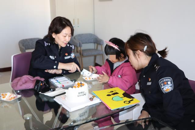“今天是妹妹生日,我们一起给她过生日好不好?”在民警的鼓励下,杨某为小女儿轻轻梳起小辫子,动作笨拙而温柔。这是她第一次为小女儿梳头。监区民警提前准备了生日蛋糕,烛光中,母女3人紧紧依偎在一起。