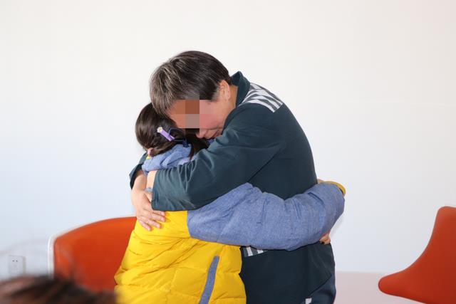 起初,小女儿怯生生地躲在奶奶身后,对这个穿囚服的杨某充满陌生。杨某蹲下身子,张开双臂,颤抖着呼唤孩子的名字。当小女儿终于扑进妈妈怀里时,在场的人无不动容。