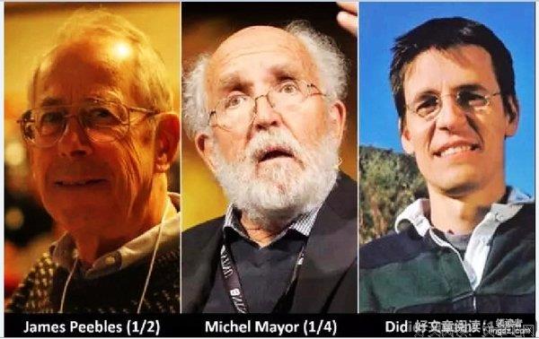 2019诺贝尔物理学奖,有三位得主:美国普林斯顿大学James Peebles教授,以表彰他“在物理宇宙学的理论发现”;以及瑞士日内瓦大学的Michel Mayor教授和瑞士日内瓦大学兼英国剑桥大学教授Didier Queloz,以表彰他们“发现了一颗围绕类太阳恒星运行的系外行星”。
