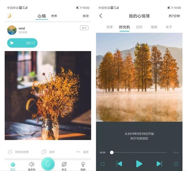 另外这个app有一个叫“时光机”的有趣功能,可以把自己记录的所有语音心情日记按照时间顺序生成播放列表播放,听自己的声音讲述自己的故事,仿佛坐着时光机飞越自己的成长轨迹,审视这一路的自己,或许能得到不一样的发现。