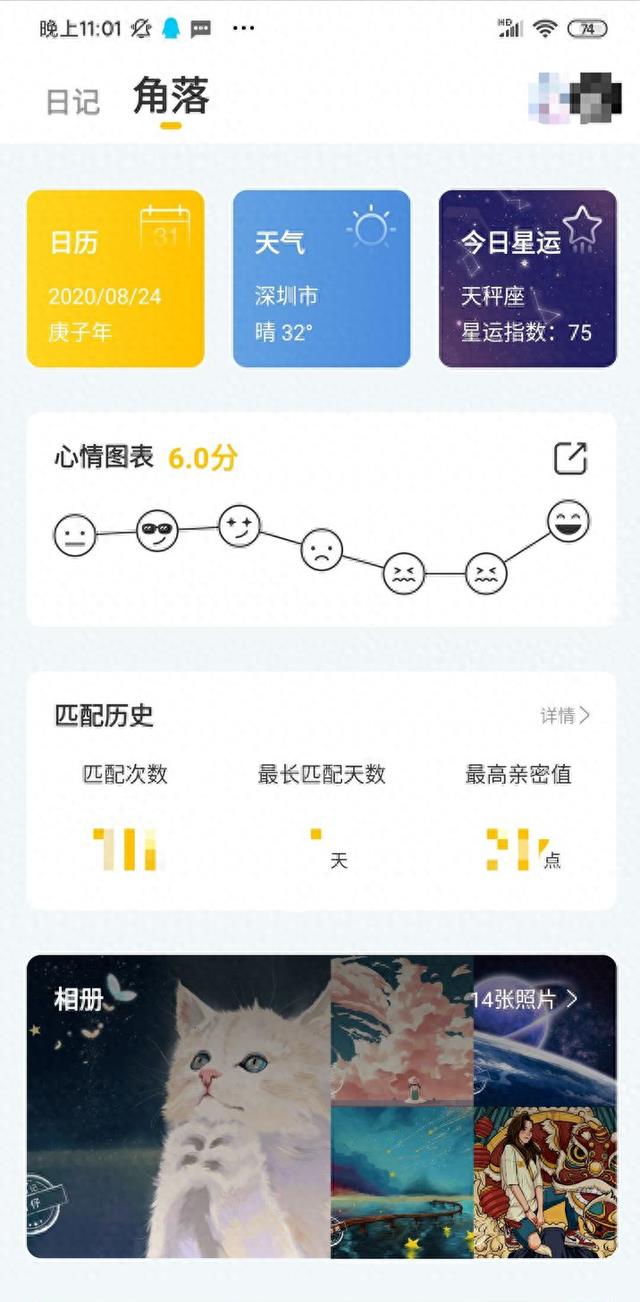 2、陪伴模式。我本人其实对现在各类app强行加入社交功能并不感冒,但是新日记app的陪伴模式其实更像是笔友:系统根据兴趣、年龄、距离等信息为你匹配一个伙伴(并且在与TA解除匹配前你只能有这一个伙伴),你们两个人并不是直接以聊天的形式交流,而是以交换日记的形式保持联系。虽然都是社交功能,但比起一对多的匹配模式和千篇一律的聊天开场白,总觉得这种方式少了些浮躁和功利,多了几分诗意与真诚。