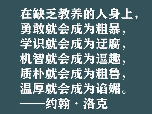 在缺乏教养的人身上,勇敢就会成为粗暴,学识就会成为迂腐,机智就会成为逗趣,质朴就会成为粗鲁,温厚就会成为谄媚。 ——约翰·洛克