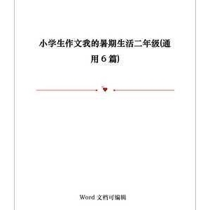 作文是通过文字来表达一个主题意义的记叙方法。那么你有了解过作文吗?以下是关于二年级暑假生活作文100字10篇,欢迎阅读与收藏。二年级暑假生活作文100字10篇 篇1二年级暑假作文大全1. 暑假参加夏令营作文250字2. ...