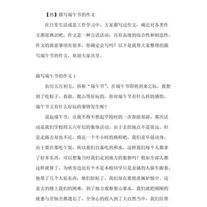 无论在学习、工作或是生活中,作文的形式很常见,但是作文的注意事项有许多,你确定会写吗?以下是五年级端午节作文500字,欢迎大家分享。篇一:五年级端午节作文500字小学生作文端午节500字 家乡的端午节我的家乡是 ...
