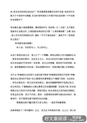 ●“吾敬李鸿章之才,吾惜李鸿章之识,吾悲李鸿章之遇。” 梁启超文笔宏大,言语间有恢弘大气,大概如孟子所言“浩然之气”吧。李鸿章确实难,后世评价也褒贬不一,但是梁启超这篇传记倒也客观中立。其中“能忍”倒是实在,一般人遭遇上李的任何一件事都不可能活下去吧,但是他活下来了。苍天不公啊!