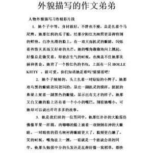 提升写作能力,做到手到擒来,希望这篇文章对您的作文能力提升有帮助,特地精心编写的外貌描写的作文600字10篇。篇一:外貌描写的作文600字10篇这一天他上穿灰蓝拼接的卫衣,胸前挂一长串钥匙,里面穿一件圆领t恤, ...