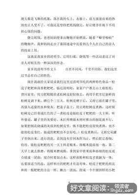 我的家乡是在江苏海门的一个小乡村,它地处长江边,气候四季宜人。家乡人一直沿着中华民族的传统习俗,都重视过节,而且每个节都有不同的讲究和过法,但,清明节是留给我印象最深的节日,因 为清明,总是带着些许淡淡的悲凉和丝丝忆念的味道。