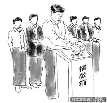 “王镇长别走,你刚才捐款没取上镜头!”李主任发难。好事的部分同志居然哈哈大笑,跟着李主任瞎起哄!“无所谓呀,捐了就好!”王镇长微笑。“这可不行呀镇长,领导必须要留有影像资料的,只有图文并茂,宣传效果才好!” 李主任不依不饒,同志们默默“坐山观虎斗”,王镇长淡定自若,微笑依然:“好,那你这次拍好了。”说话间又掏出200元投进了纸箱。照片定格在王镇长捐钱的瞬间,而身前的艾书记却表情扭曲,怒视着李主任!李主任的心不由得发凉。