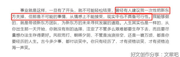 有人劝他关掉新东方,俞敏洪说:“打退堂鼓的影子,在我心里从没出现过。”