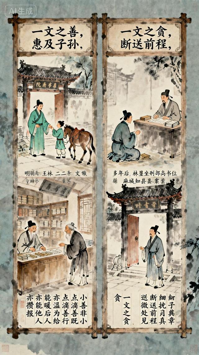 林俊正要掏钱相助,身旁一位读书人却抢先拿出二十文递给童子,让他不必再等,速速归家。童子千恩万谢,骑驴离去。林俊与这读书人打趣,笑称好事被他抢先,二人攀谈后方知,彼此皆是南雍学子,对方名为王林,是湖广麻城人。