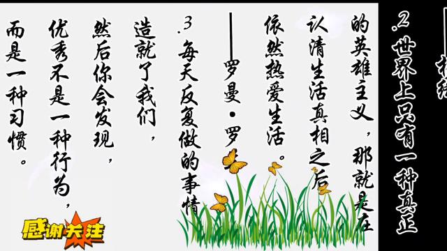 ·二、世界上只有一种真正的英雄主义,那就是在认清生活真相之后依然热爱生活。罗曼罗兰。